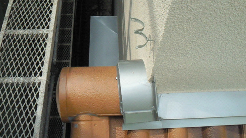 雨押へ水切りとは、屋根と外壁のつなぎ部分から雨水を防ぐために必要な板金工事です。