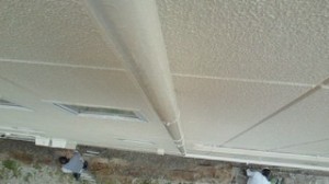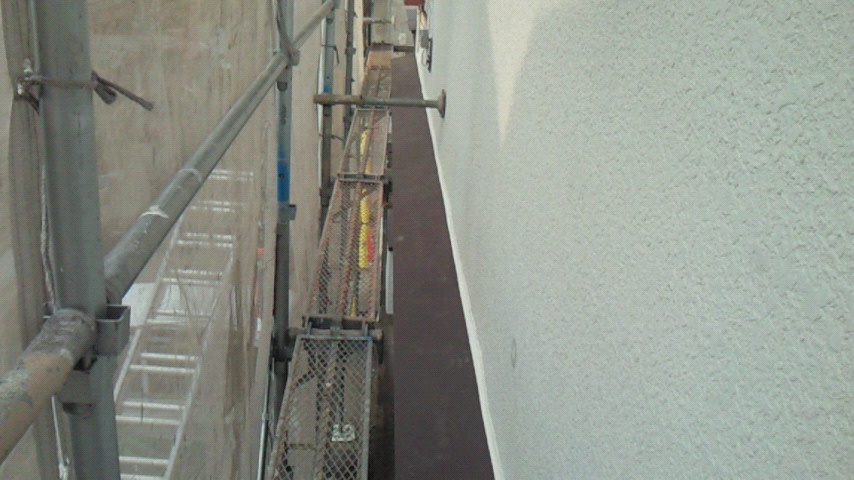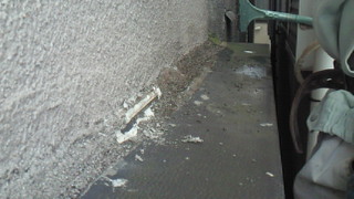解体してみると、マンションの雨樋と換気扇カバーが境界を越えてしまっていました。