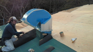 屋根の上でエルボ方の排気ダクトを取り付けて完了です。