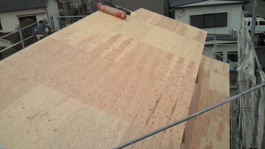 今日は尼崎市の新築住宅現場に屋根下地(防水紙)工事に行きました。