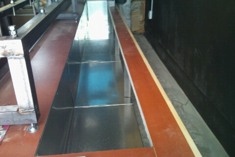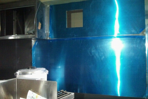 新たに追加工事でSUSの化粧壁仕上げ(ヘアーライン)と、