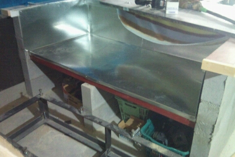 カウンターの下に亜鉛鉄板を加工して取り付けました。
