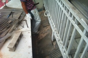 パラペット内部の瓦を撤去して谷を入れ替え、
