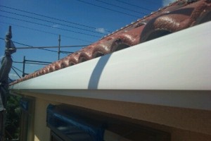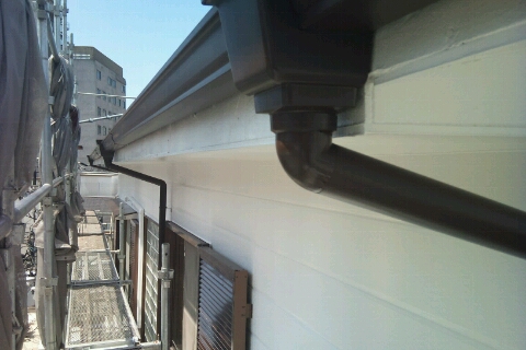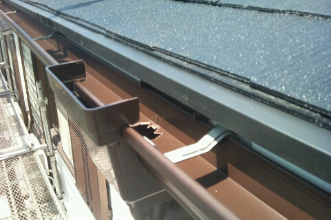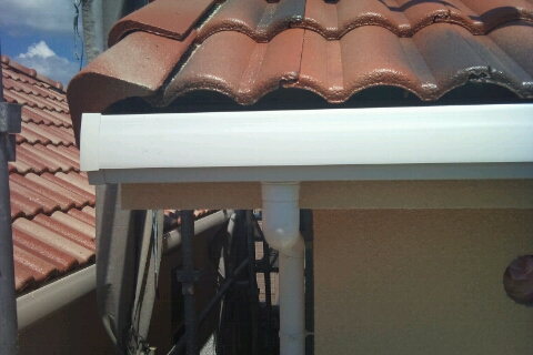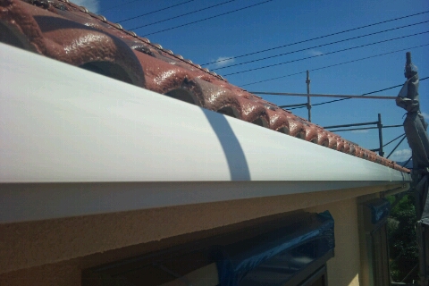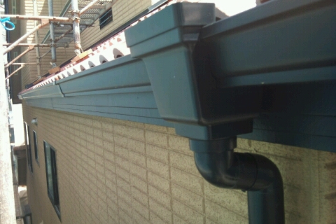 軒先水切を加工して延長し、新設で雨樋を施工しました。。