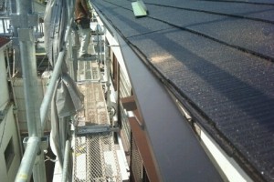 午後からマンションの陸屋根部のアルミ製の笠木を取り付けにいきました・・・