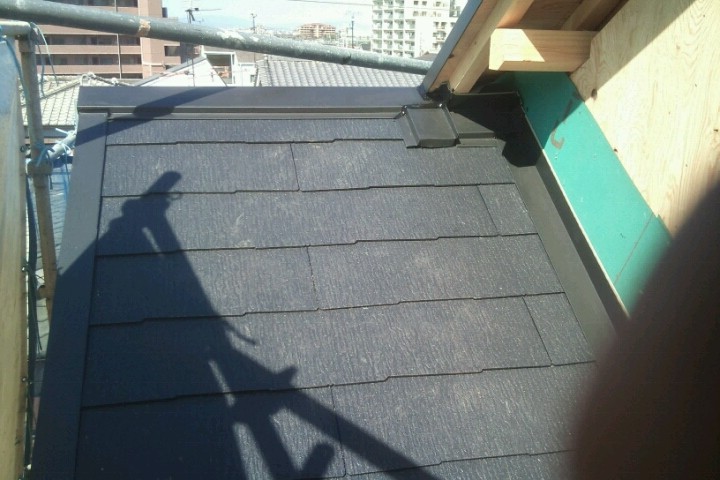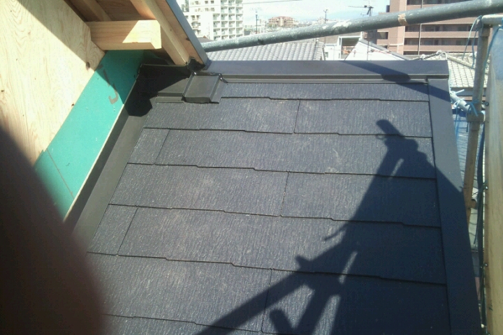 屋根勾配が急勾配で施工するのも一苦労でしたが(足場なしです・・・)