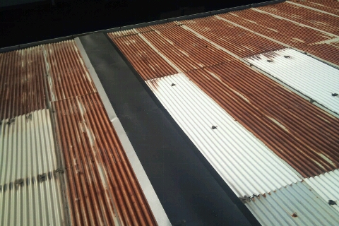 既存波板屋根のいたる所から雨漏りが発生しており、