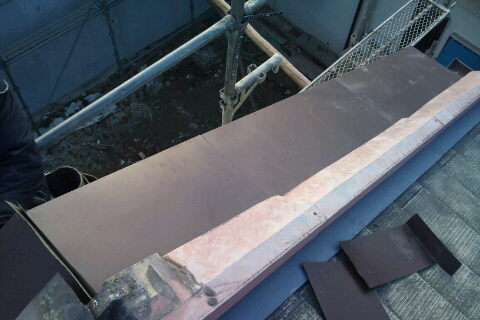 今回はガルバリウム鋼板を加工し雨漏れの箇所を覆う事にしました。