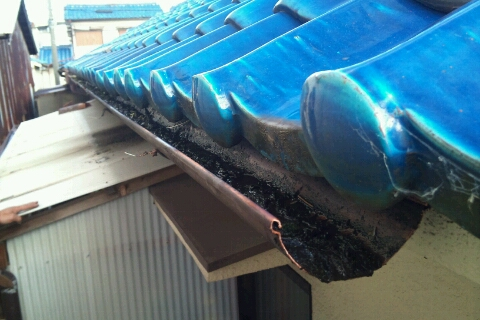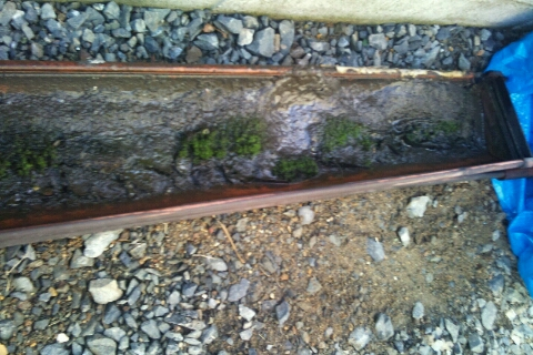 現場調べしてみると、雨樋の中にかなりのゴミが詰まっており、