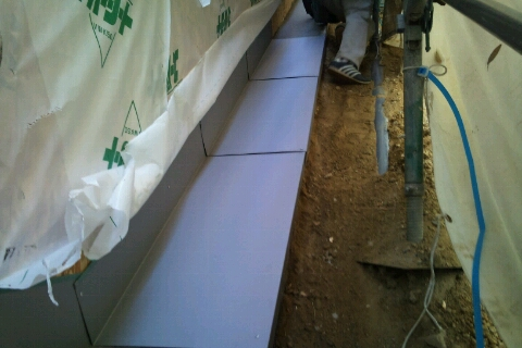 急斜面を造成し大きな住宅を建築中ですが、基礎と外壁の取り合い部に