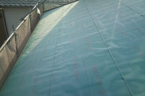 下地12mm合板を施工し防水紙を施し本体工事です!