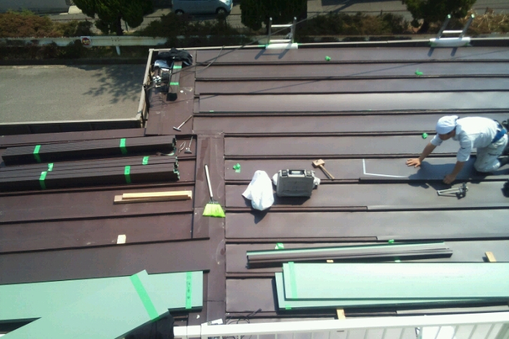 今回は既存屋根瓦棒の上より新たにガルバリウム鋼板を仕様加工した