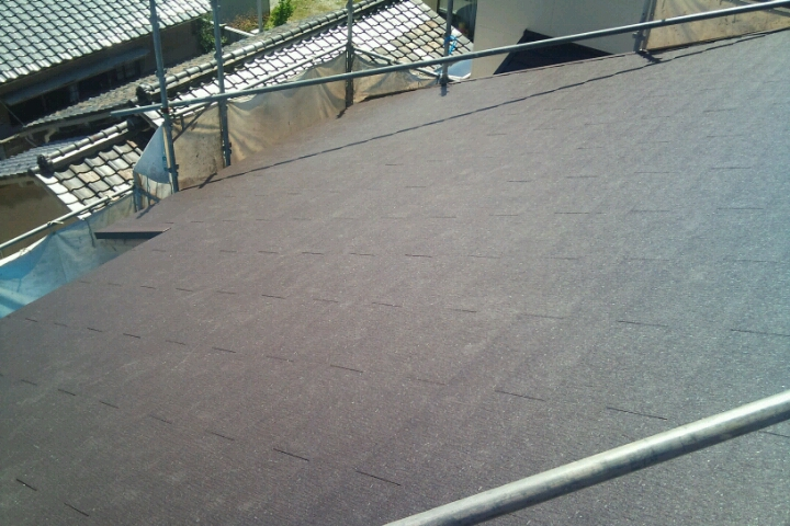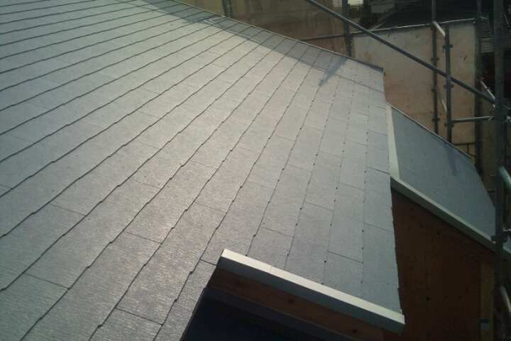 特注の屋根材を施工しました。既製品の屋根材よりもシンプルで