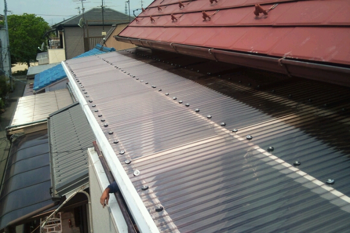 既存屋根(アスベスト含のカラーベスト)を撤去せずに施工出来る設計ですので、