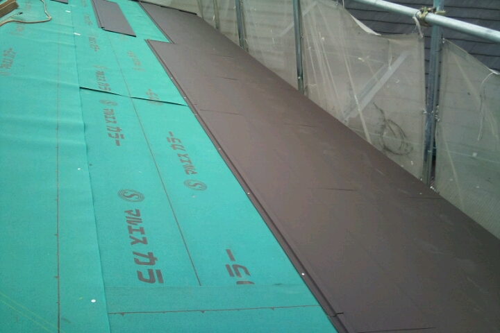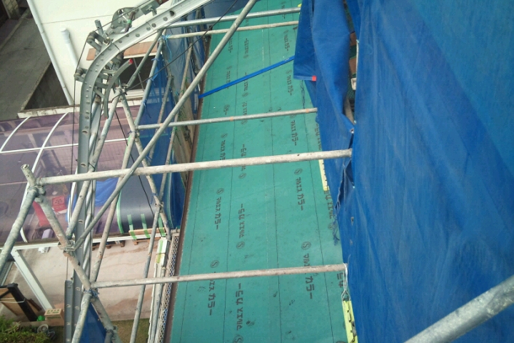 続いて下地防水ルーフィングを施工