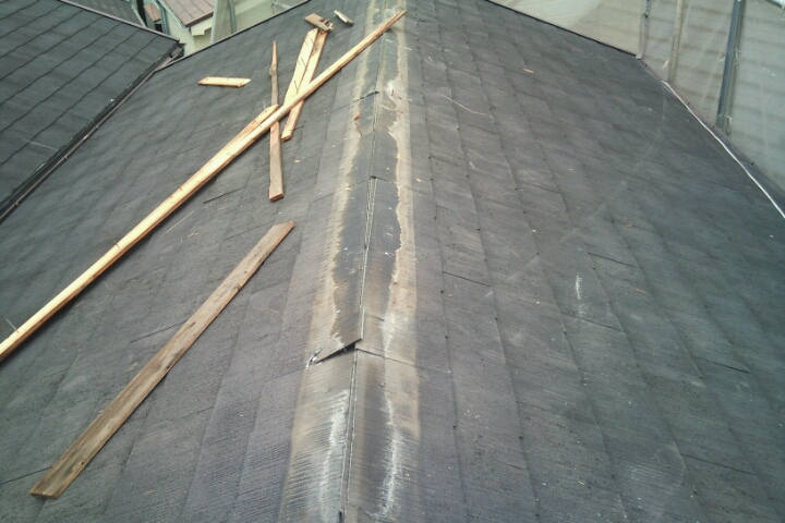 まず、既存屋根の棟板金等を撤去します