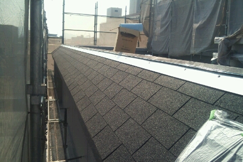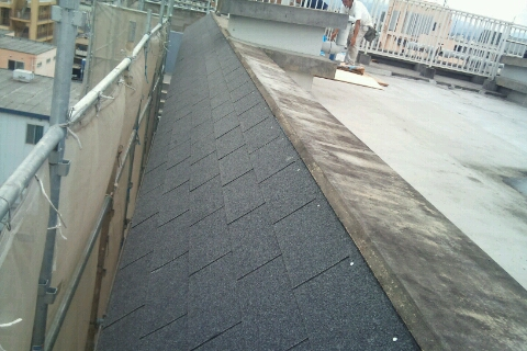 既存屋根材はアスファルトシングルですが、長年の経年劣化と少し前の