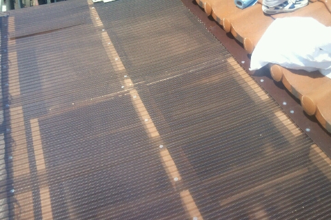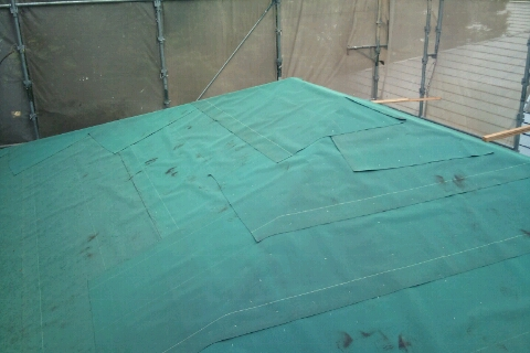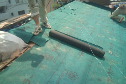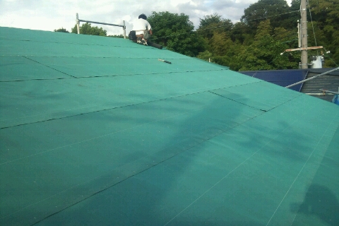 全ての瓦・土等を撤去し、下地防水紙(アスファルト製)を敷き詰めます!!