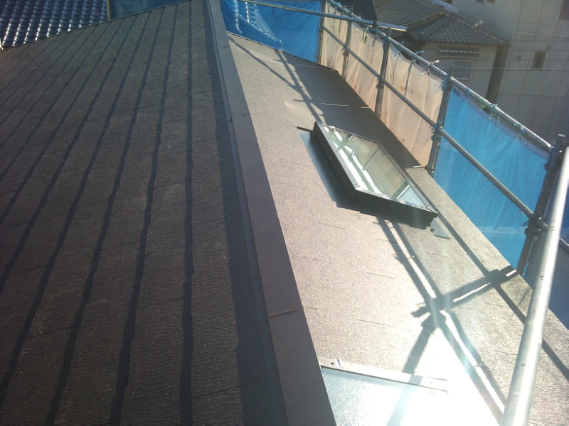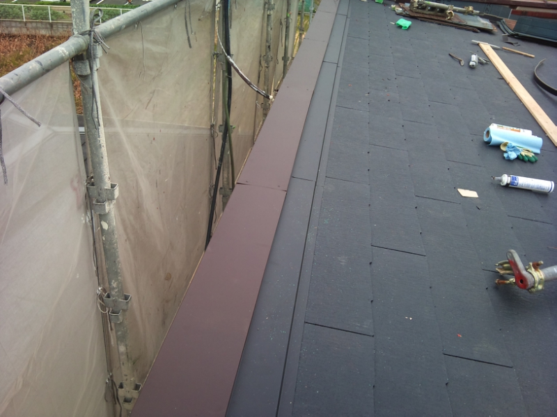 既存屋根材の劣化等も激しく、下地野地板、谷部等の収まりも良くなかったので、