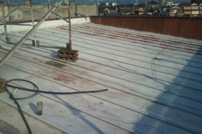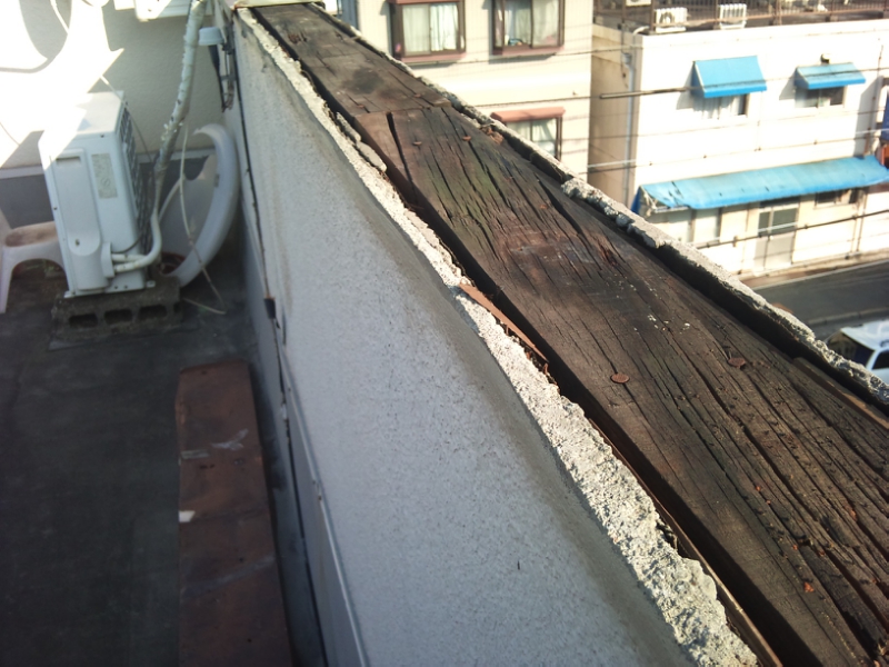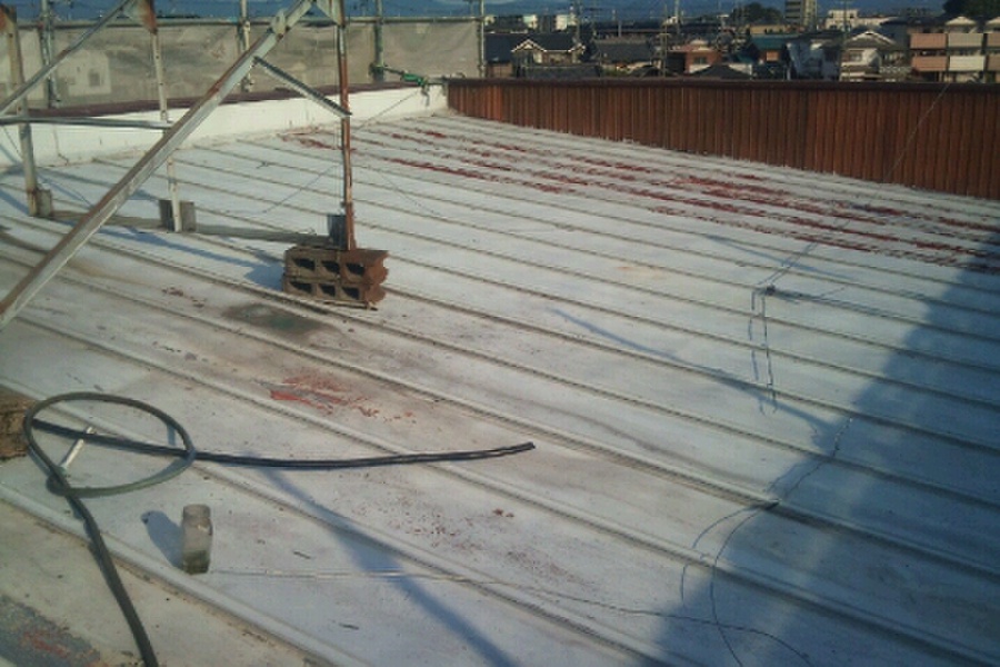 今回の雨漏り屋根物件は、既存屋根がパラペット形状で
