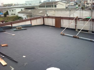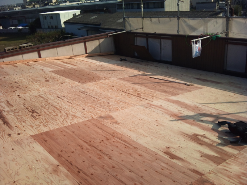 下地(勾配変更)野地工事は本日にて完了!