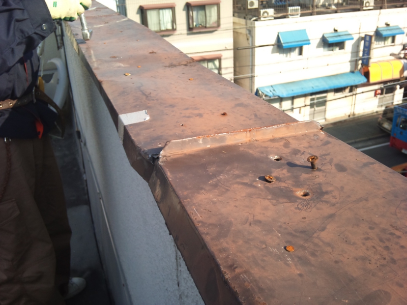 パラペット部の笠木に関しては、既に外れかけていました。。