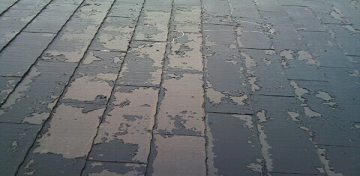 古い平板スレート瓦は徐々に劣化し、色あせ、ワレ、ヒビが発生します。