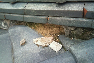 棟瓦等の漆喰等の破損・コーキング(ラバーロック)の施工不良