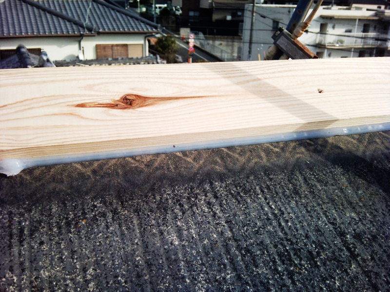 この工法では、数年で、一部ラバーが破損し、そこから進入した雨水が