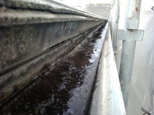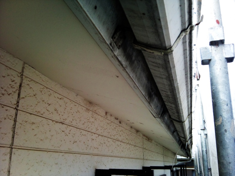集合住宅ですので、軒樋の流れが長く、しかも排水箇所が少ない状況でした。