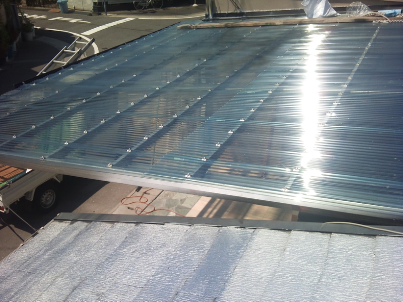 今回はポリカ波板を仕様!新製品の熱線30%カットを施工しました^^
