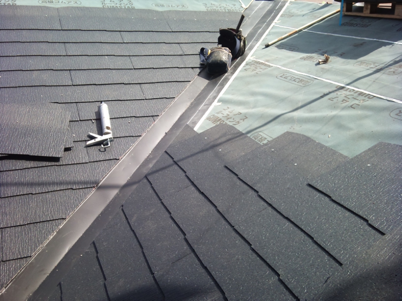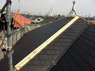 今回はカラーベスト屋根の棟(カラー鉄板)が古くなり、