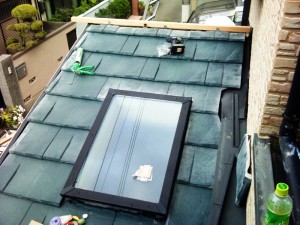 お客様の要望で、またまた納まりの悪い場所に天窓が・・・