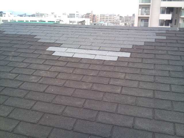 既存屋根材は、マンション等でよく仕様されているアスファルトシングルです。