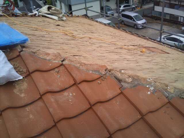 古い日本瓦の下には大量の土があり、かなりの重量が建物の負担となっています・・・。