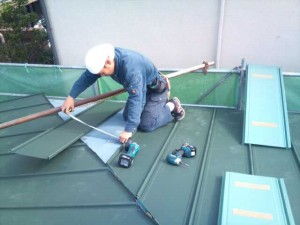 今回の屋根仕様材はお馴染みのガルバリウム鋼板製!勘合立平葺きMSアーバンライン!モスグリーンです!