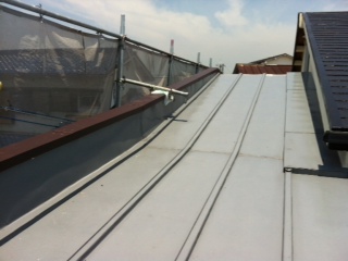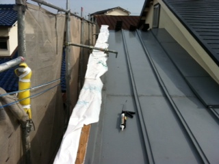 本日の行程は下地ルーフィング、各部板金役物、本体工事と