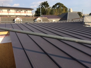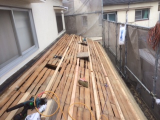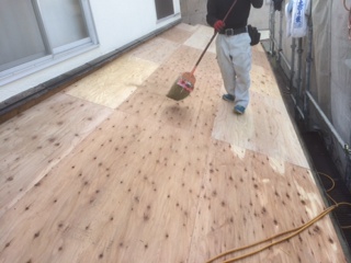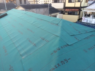 既存野地板との間に通気層を設け、構造用合板にて野地造作!アスファルトルーフィング(防水紙)施工!