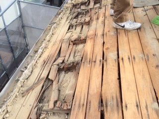 軒先の辺りの野地板はかなり雨水が漏水していたようで劣化が激しいのがわかります。。