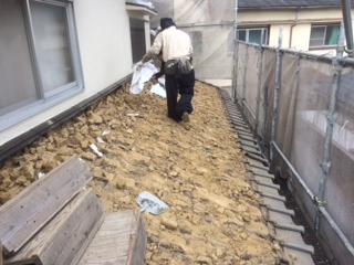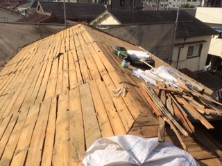 大屋根全ての屋根瓦・土を撤去すると、雨漏れの原因箇所がはっきりとわかりました・・・・
