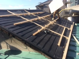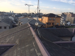 今回のリフォーム物件ですが、既存屋根は平板スレート(カラーベスト)です。