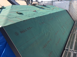 本日の工程は既存屋根材(アスベスト含有)を撤去し、