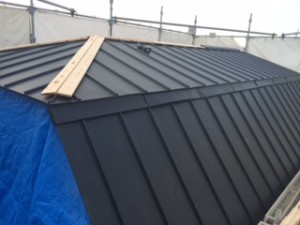 野地板12mm合板の補強増し打ち、下地アスファルトルーフィング工事まで完了です!