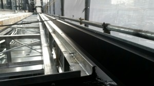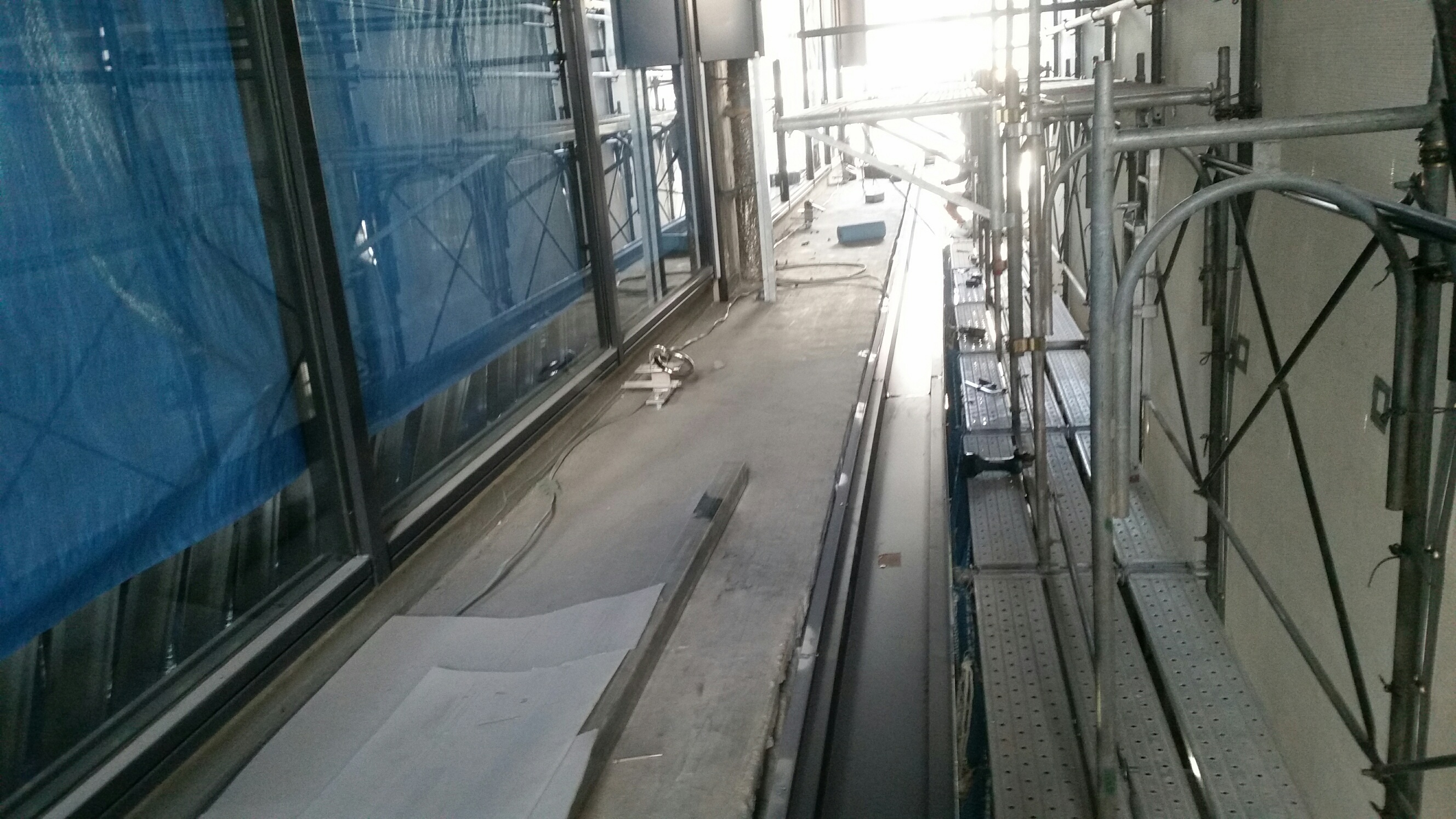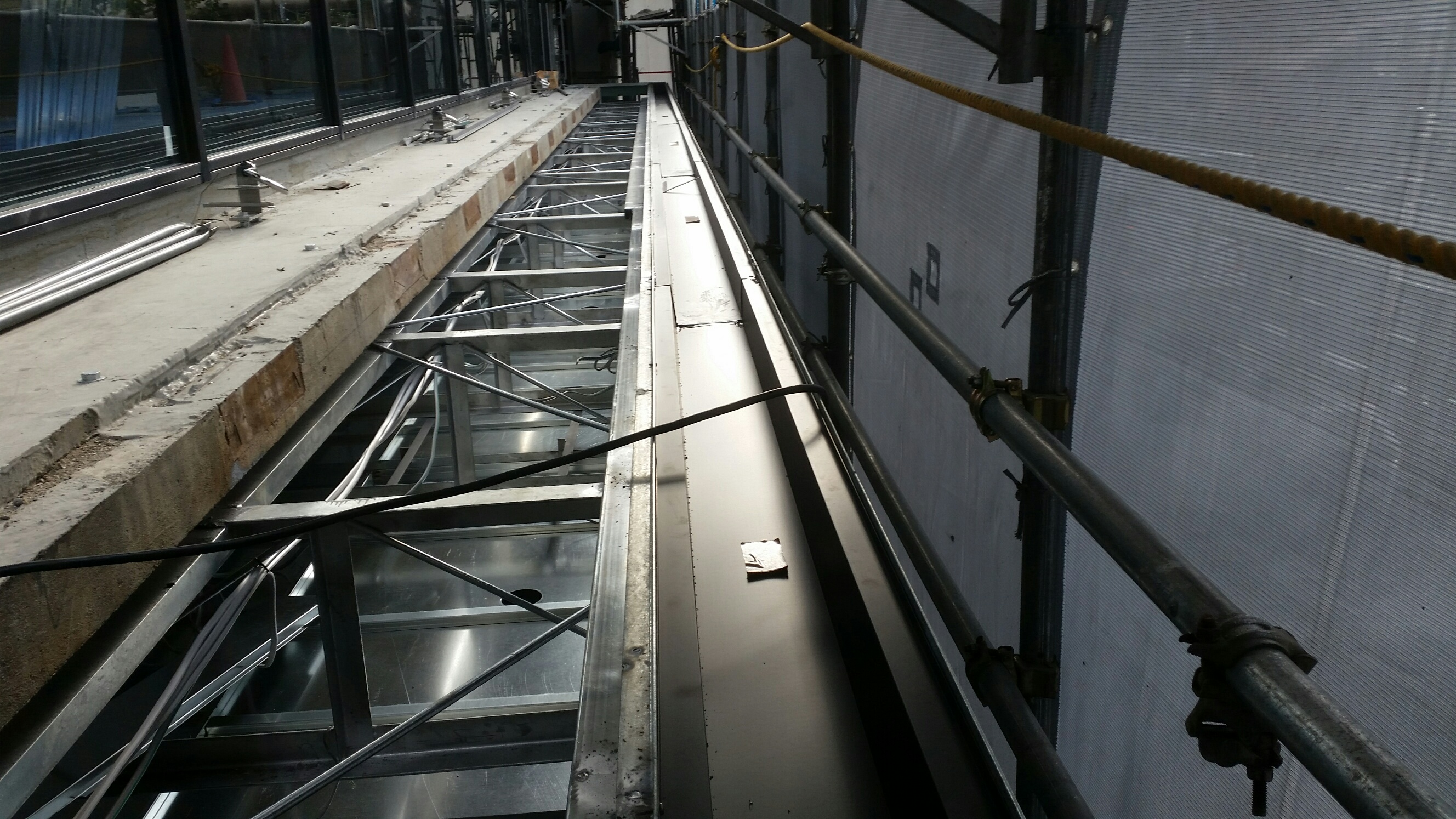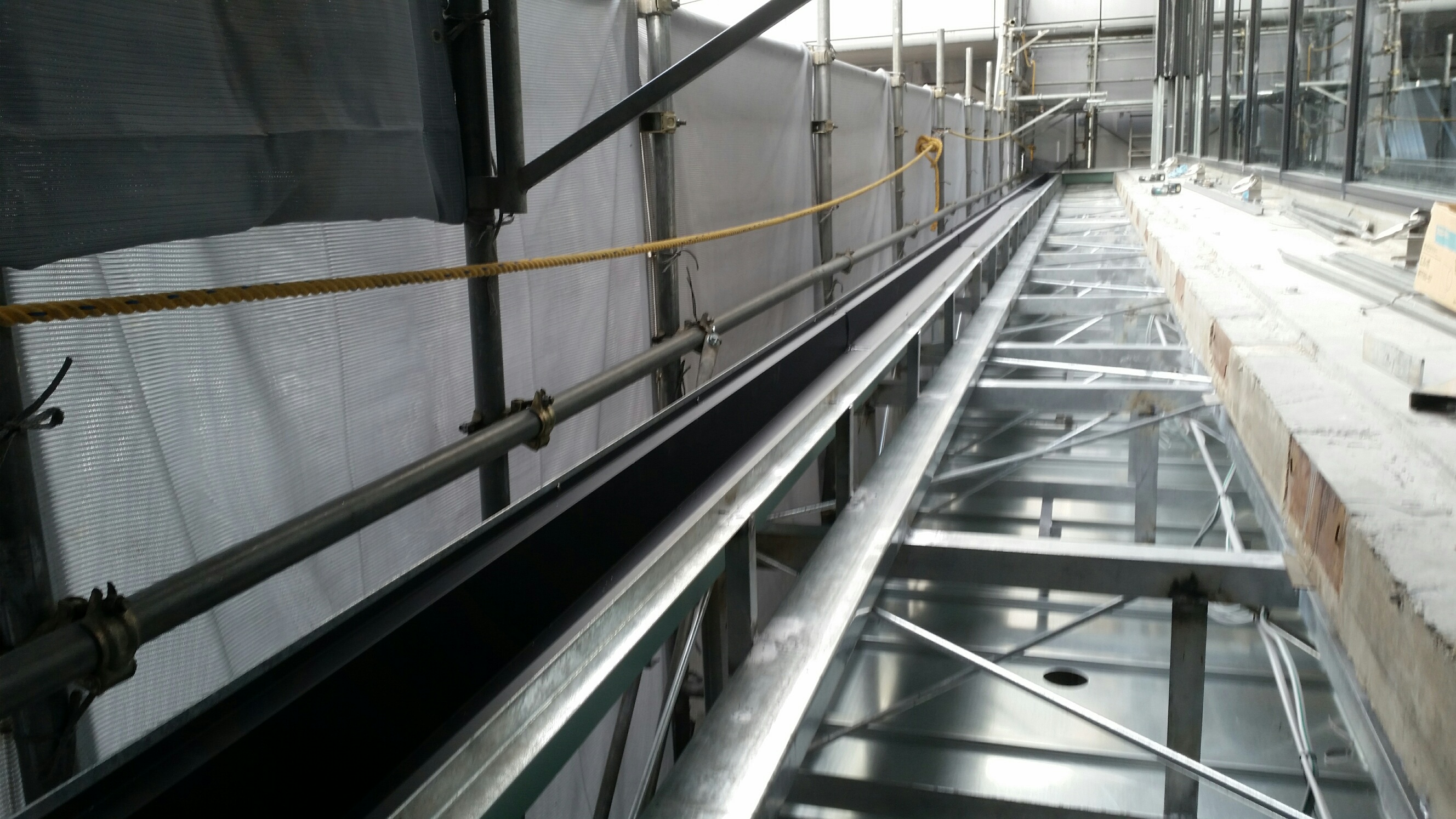大きな施設の改修工事で、新設庇パネルの内部に先行して