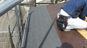 既存の屋根形状にあわせガルバリム鋼板を加工し取り付けていきます!!